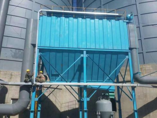 YMD-I型低壓噴吹脈沖除塵器由濾袋組件、導(dǎo)流裝置、脈沖噴吹系統(tǒng)、除灰系統(tǒng)、控制系統(tǒng)、離線保護(hù)系統(tǒng)、箱體等組成。脈沖布袋收塵器含塵氣體由導(dǎo)流管進(jìn)入各單元室,在導(dǎo)流裝置的作用下,大顆粒粉塵被分離后直接落入灰斗,其余粉塵隨氣流均勻進(jìn)入各倉室過濾區(qū),過濾后的潔凈氣體透過濾袋經(jīng)上箱體、提升閥排風(fēng)管排出。當(dāng)過濾袋表面粉塵達(dá)到 厚度時(shí),濾袋內(nèi)外的壓差就會逐漸增加;當(dāng)壓差達(dá)到設(shè)定值(由壓差儀控制時(shí)久來自貯氣罐的空氣就會迫使脈沖閥的膜片自動打開,輸送 量的空氣,通過風(fēng)管由噴嘴噴入濾袋內(nèi),進(jìn)行在線自動反吹清灰,抖落濾袋上的粉塵。落入灰斗中的粉塵經(jīng)卸灰閥排出后,利用輸灰系統(tǒng)送出。
